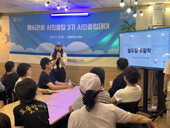 (전남=NSP통신) 김성철 기자 = 광양문화도시센터는 지난 달 28일 ‘매시러운 시민클럽’ 3기 10팀 50여 명의 시민이 모인 가운데 3기 활동을 마무리하며 그간의 활동을 공유하기 위한 시민클럽데이를 개최했다.