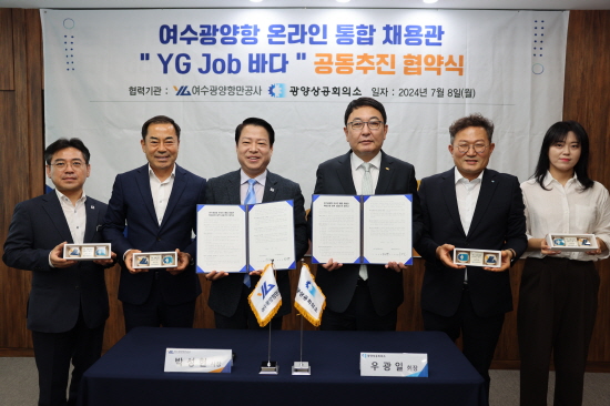 이에 공사와 광양상공회의소는 협업을 통해 구직자 및 구인기업 지원을 강화하기 위해 지난 8일 업무 협약식을 갖고 YG Job바다 공동추진에 힘을 모으기로 약속했다.