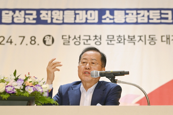 달성군 공직자 600여 명이 참석한 이날 토크쇼는 ‘선진대국 시대로 가자’ 라는 주제로 홍 시장이 직접 진행했으며, MZ세대 공무원들에 대한 당부와 대구경북 행정통합, TK 신공항, 대구 문화예술허브 조성(국립근대미술관, 국립뮤지컬콤플레스) 등 대구시정을 비롯해 홍 시장의 스트레스 해소법, 인생의 터닝포인트 등 개인적인 질문까지 다양한 내용의 사전질문지 50여 개를 직접 읽고 답변하며 직원들로부터 뜨거운 호응을 얻었다.
