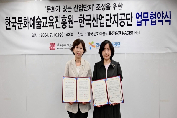 조혜영 한국산업단지공단 부이사장과 박은실 한국문화예술교육진흥원장은 이날 한국문화예술교육진흥원(Kaces Hall)에서 이같은 내용의 업무협약을 체결했다.