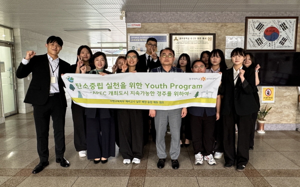 (경북=NSP통신) 조인호 기자 = 동국대 WISE캠퍼스 사범교육학부는 지난 9일 경주중학교에서 지역연계 특성화사업의 일환으로 ‘탄소중립 실천을 위한 Youth program : APEC 개최도시 지속가능한 경주를 위해’ 를 진행했다.