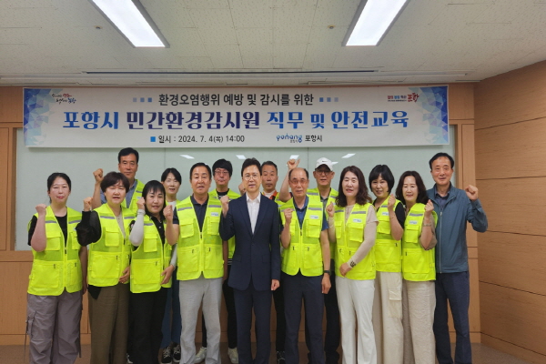 (경북=NSP통신) 조인호 기자 = 포항시는 철강공단, 영일만산단, 청하농공단지 등 산업단지 및 대형공사장, 대기 및 폐수배출업소 등 포항시 전역의 환경오염물질 배출사업장의 불법 환경오염행위 감시를 위한 민간환경감시원의 직무 및 안전교육을 지난 4일 실시하고 8일부터 본격적인 운영에 들어갔다고 밝혔다.