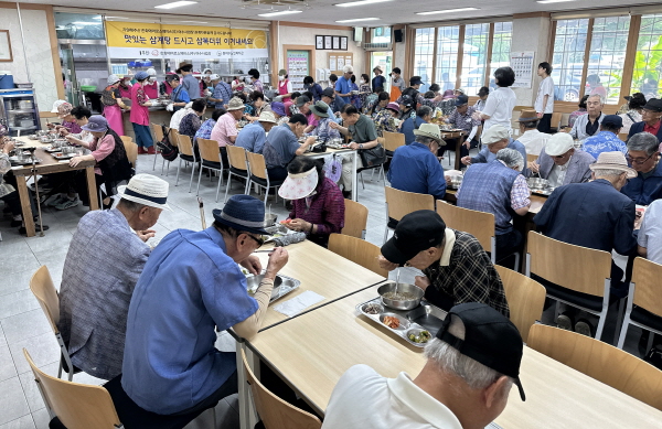 건강식은 초복을 맞아 기업과 복지관이 지역사회 어르신의 건강한 여름나기를 기원하며 삼계보양식을 준비했으며 급식에는 소비자교육중앙회와 정보과학고 25회 친구모임에서 배식과 설거지 등을 지원했다.