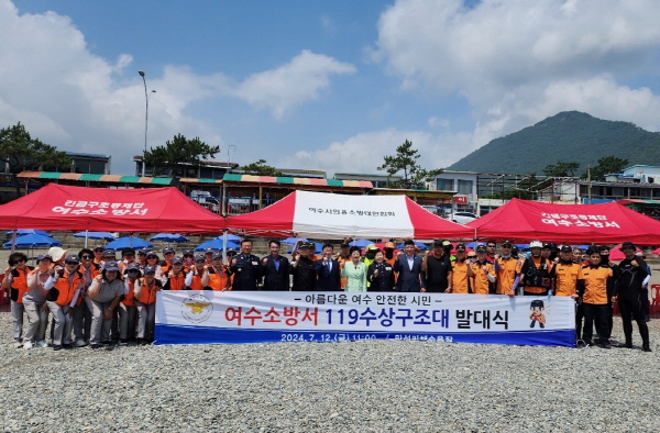 (전남=NSP통신) 서순곤 기자 = 여수소방서는 12일 여수 만성리 해수욕장에서 ‘119수상구조대’ 발대식을 개최했다