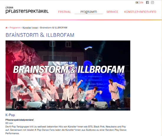 올해 전 세계에서 800여 개의 팀이 참가 신청서를 제출한 가운데 ‘린츠시 페스티벌 추진위원회’는 108개 팀(27개국)을 선정했다. 대한민국에서 총 2팀이 공연 자격을 얻었으며, 광양시에서 자체 모집과정을 거쳐 선발한 K-POP 댄스팀(Brainstorm & ILLBROFAM)이 그중 한 팀이다.