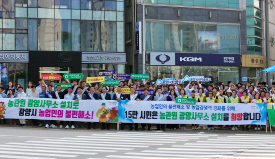 행사에 참여한 이기욱 한농연 회장은 “농업경영체 중 67%가 60세 이상으로 고령화된 농민들은 하루빨리 우리 지역에 농관원 광양사무소가 설치되기를 바라고 있다“며 시민들의 적극적인 참여와 관심을 당부했다.