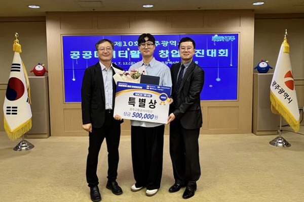 (경북=NSP통신) 김대원 기자 = 한국장학재단(이사장 배병일)은 지난 12일 광주광역시청 시민숲에서 열린 ‘제10회 광주광역시 공공데이터 활용 창업경진대회’ 시상식에서 광주청년창업센터 창업기숙사 입주생인 권설웅 학생이 특별상을 수상했다고 밝혔다.