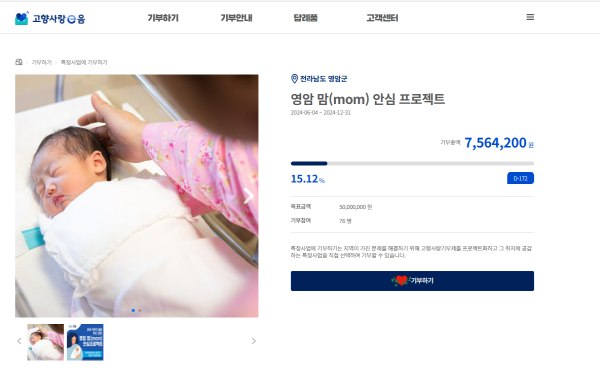 영암군 관계자는 “영암군에 기부해 준 한 분 한 분 덕분에 1만 건 돌파를 이룰 수 있었다. 모아진 기부금은 기부자의 정성에 부합하도록 소중히 사용하겠다”고 밝혔다.
