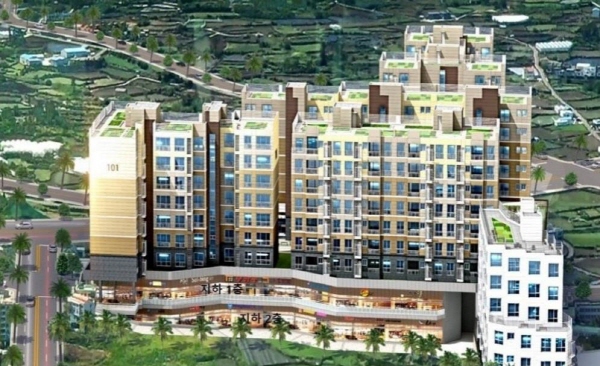 제주 애월항구가 아름다운 뷰로 자리하고 있는 ‘앨리프 애월’ 신축 아파트는 총 9998㎡(3024평) 대지에 연면적 2만9837㎡(약 8985평)로 내년 2월 준공을 목표로 지하 2층에서 지상 7층에 이르는 5개동 166세대로 건축된다. 분양율은 현재 80% 진행 중이다.