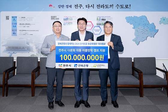 (전북=NSP통신) 김광석 기자 = JB금융그룹 전북은행(은행장 백종일)이 23일 전주시청 시장실에서 전주시 다문화 아동을 위한 도내 최대 규모의 여름방학 캠프 지원 후원금 1억원 전달식을 실시했다고 밝혔다.