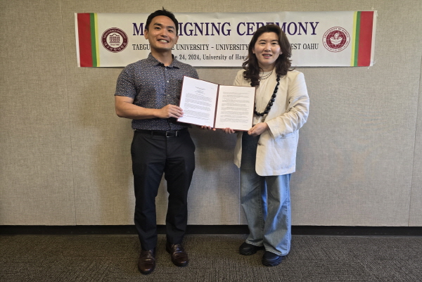 (경북=NSP통신) 김대원 기자 = 대구과학대학교(총장 박지은)는 24일 미국 하와이주립대학교 웨스트오아후캠퍼스(University of Hawaii - West O’ahu, 이하 UHWO)와 교환학생 프로그램 운영을 위한 MOA(합의각서, Memorandum Of Agreement)를 체결했다.