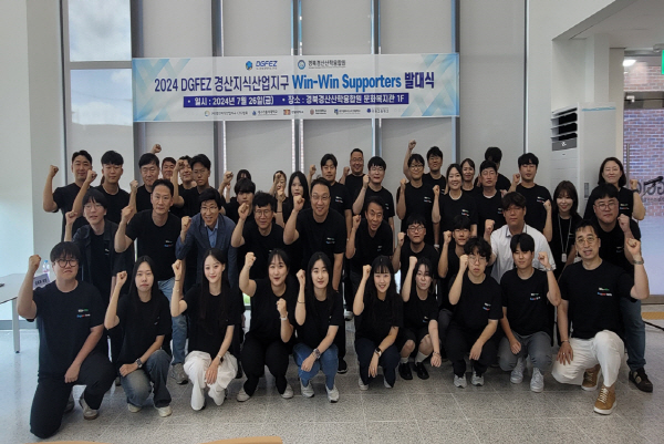 (경북=NSP통신) 김대원 기자 = 경북경산산학융합원은 26일 DGFEZ 경산지식산업지구 Win-Win Supporters 발대식 개최를 통해 지역의 학생(대학생, 고등학생)이 경산지식산업지구와 입주기업 홍보 시작을 알렸다.
