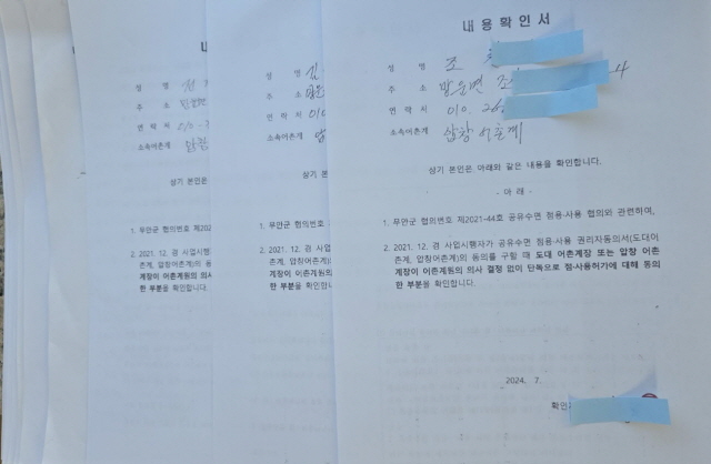 압창어촌계 소속 어민 왕일 등 43명은 최근 “공유수면 권리자 동의를 구할 때 어촌계장이 계원의 의사 결정 없이 단독으로 점사용허가에 대해 동의한 부분을 확인합니다”라며 서명 날인해 감사 자료 등 제공에 동의했다.