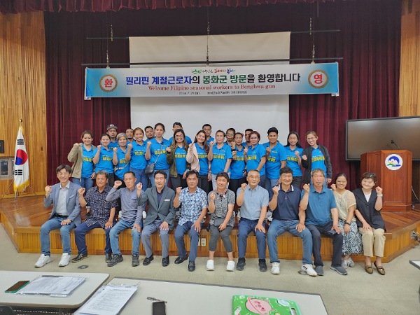 (경북=NSP통신) 김오현 기자 = 봉화군은 지난 29일 필리핀 계절근로자 20명이 입국해 봉화군농업기술센터에서 환영식을 개최했다.