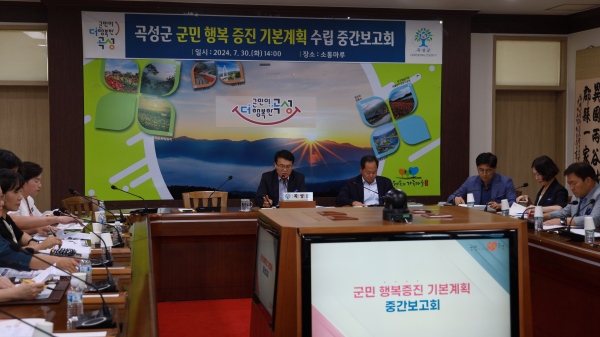 (전남=NSP통신) 김용재 기자 = 곡성군이 최근 '군민 행복 증진 기본계획' 수립을 위한 중간보고회를 열고 오는 2025년 시행을 목표로 종합적인 행복정책 마련에 박차를 가하고 있다.