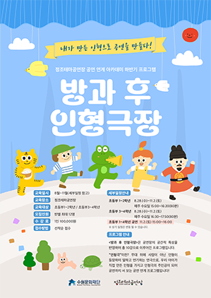 ‘방과 후 인형극장’은 학업을 마치고 온 초등학생을 대상으로 8월 말부터 11월 초까지 주 1회씩 운영된다. 인형극 감상부터 동화구연 활동, 역할 인형 만들기, 발성, 마임 등 리허설 및 공연 당일을 포함해 총 10회에 걸쳐 진행한다.