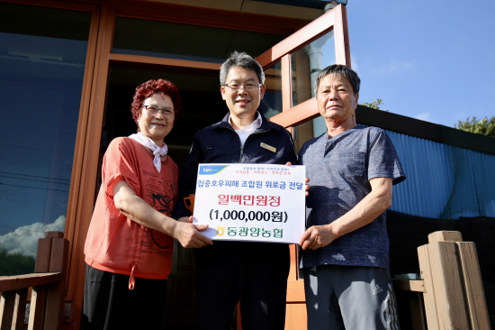 (전남=NSP통신) 김성철 기자 = 동광양농협(조합장 이돈성)은 최근 폭우로 침수피해를 입어 크게 다친 농업인 조합원에게 수해복구 위로금을 전달해 잔잔한 감동을 주고 있다.