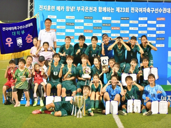 (경북=NSP통신) 조인호 기자 = 위덕대학교(총장 김봉갑) 여자축구부가 제23회 전국여자축구선수권대회에서 우승을 차지하며 대회 2연패와 함께 올 시즌 2관왕을 달성했다.