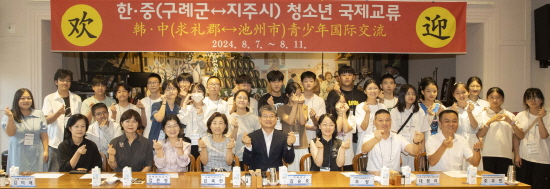 (전남=NSP통신) 김성철 기자 = 구례군은 8월 7일~11일까지 4박 5일간 자매결연 도시인 중국 지주시 청소년 교류단(지주시교육국 서기 등 16명)을 초청해 다양한 교류 활동을 펼쳤다고 밝혔다.