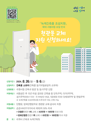수원시 관계자는 “녹색건축물 조성 지원사업의 지원 내용을 (방화)단열문 교체까지 확대했다”며 “많은 시민이 혜택을 받길 바란다”고 말했다.