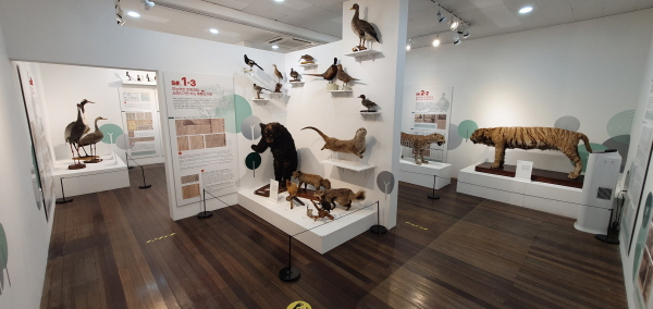 호랑이, 표범, 참새, 늑대, 멧돼지, 두루미 등 다양한 동물들에 엮인 이야기를 박제 표본과 함께 만나볼 수 있다.