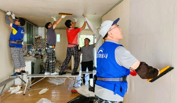 이 회원들은 더운 날씨에도 불구하고 늦은 시간까지 도배, 전등 교체, 청소 등을 실시하며 구슬땀을 흘렸다.