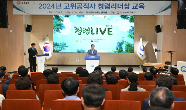 (경북=NSP통신) 조인호 기자 = 경상북도교육청(교육감 임종식)은 12일 본청 행복지원동 연화관에서 ‘청렴과 직장 내 괴롭힘 예방’ 을 주제로 고위공직자 청렴 리더십 교육을 개최했다.