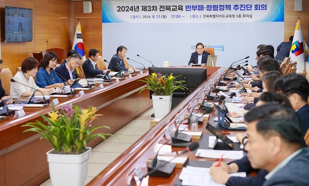 (전북=NSP통신) 김광석 기자 = 전북특별자치도교육청(교육감 서거석)이 12일 서거석 교육감 주재로 ‘전북교육 반부패·청렴정책 추진단’ 제3차 회의를 개최했다고 밝혔다.