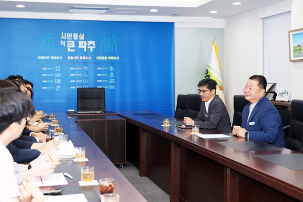 김경일 시장은 “파주시 현안에 관심을 가지고 방문해주신 경기연구원 측에 깊은 감사를 드린다”며 “경기연구원과 함께 시민들의 목소리를 반영한 시정 현안에 대해 조사·연구해 파주시가 ‘시민 중심 더 큰 파주’로 도약할 수 있도록 최선을 다하겠다”고 말했다.