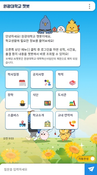 한편 원광대는 지속적인 개발을 통해 내년에는 학사행정, 도서관, 출결 등 교내시스템과 챗봇을 연동하고 2026년에는 학생역량강화 프로그램과 연계해 개인화 맞춤 정보를 제공하는 등 더욱 고도화된 서비스를 단계적으로 선보일 예정이다.