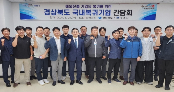 (경북=NSP통신) 조인호 기자 = 경상북도는 21일 경주 화랑 마을에서 해외에 사업장을 두고 있는 도내 자동차부품 기업들을 대상으로 국내 복귀 기업 간담회를 개최했다.