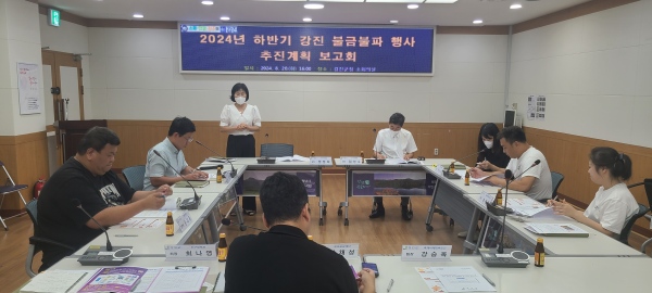 강진군은 하반기 행사를 위해 지난 20일 군청 소회의실에서 부서별 관계자 9명이 참석한 가운데 ‘2024년 하반기 강진 불금불파 행사 추진 보고회’를 가졌다.