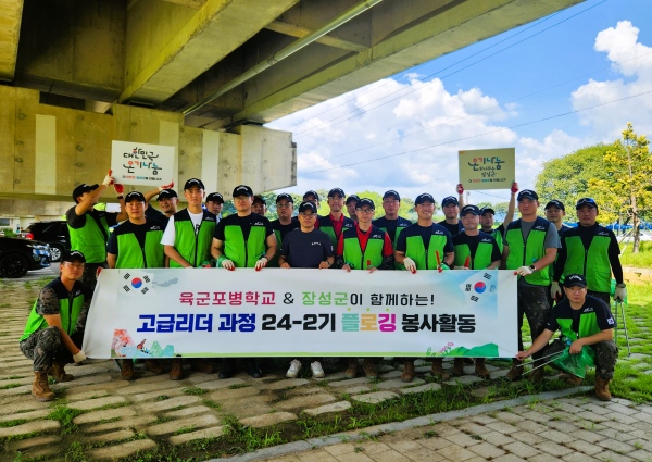 (전남=NSP통신) 김용재 기자 = 장성군 상무대 육군포병학교 부사관 교육생 25명이 최근 장성군 황룡강 일원에서 ‘플로깅’ 봉사 활동을 펼쳤다.