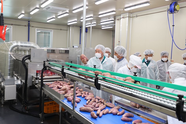 센터의 가공 라인은 군고구마 페이스트 생산과 IQF(개별급속냉동) 시설로 구성돼 있으며 고구마 껍질 제거와 심 분리, 포장 등을 자동으로 대량 생산할 수 있다.