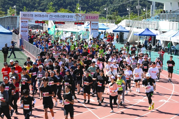 마라톤은 봉화공설운동장을 출발해 삼계회전교차로 → 유리요양원(5㎞ 반환점) → 유림녹지원(10㎞ 반환점) → 가평교차로 → 오록소공원(Half 반환점) 구간으로 백두대간 산자락을 따라 봉화의 가을 정취를 느끼며 달릴 수 있는 코스로 마련됐다.