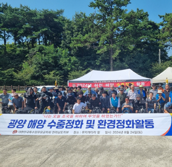 (전남=NSP통신) 김성철 기자 = 광양시는 지난 24일 중마동 무지개다리 일원에서 대한민국 특수임무유공자회, 자원봉사자 등 약 70여 명이 참여해 수중 정화 활동을 진행했다고 밝혔다.