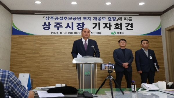 강영석 시장은 지난 26일 오전 10시 30분 상주시청 브리핑룸에서 기자회견을 갖고 상주공설추모공원(이하 추모공원) 부지 재공모 결정을 시민에게 발표했다.