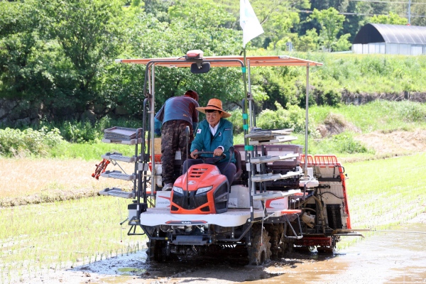 NSP통신-김성 장흥군수가 모내기를 돕고 있다. (사진 = 장흥군)