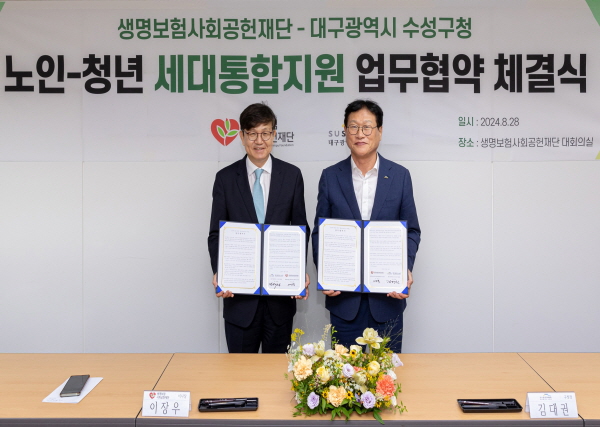 이장우 생명보험사회공헌재단 이사장은 “최근 큰 이슈로 떠오르고 있는 고령화 현상에 대비해 일시적 지원이 아닌 장기적으로 지역사회 발전에 도움이 될 수 있는 프로젝트를 기획하게 돼 기쁘다”며 “수성구에서 처음 시작하는 이번 프로젝트가 세대 간 협력을 이끌고 새로운 사회적 가치를 창출해 전국적으로 확산되길 기대한다”고 밝혔다.