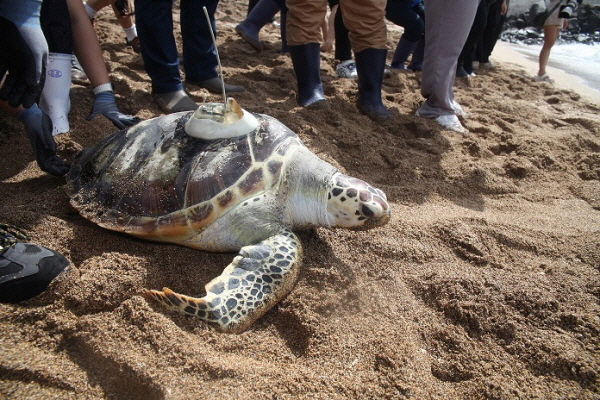 과거 방류되었던 바다거북의 등갑에는 국립해양생물자원관에서 제공한 GPS가 부착되어 이동 위치를 파악해 연구데이터를 추적중이다.