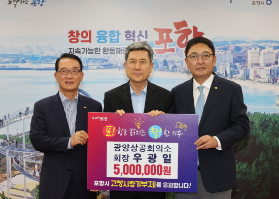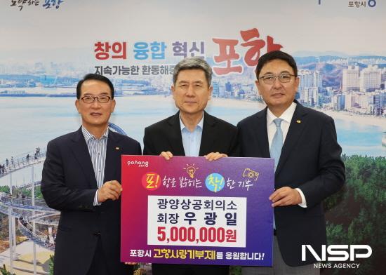 (전남=NSP통신) 김성철 기자 = 광양상공회의소 우광일 회장이 지난 28일 포항시청을 방문해 고향사랑기부금 개인 최고한도액 500만 원을 기부했다.