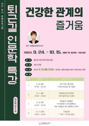 ‘건강한 관계의 즐거움’ 주제로, 9월 24일부터 매주 화요일 19시 총 4회 강의