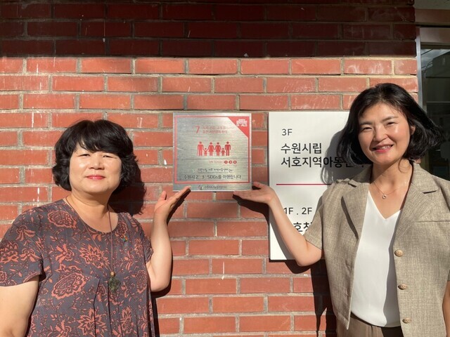 현판 부착식에는 박종아 수원지속가능발전협의회 사무국장, 전경숙 수원시립서호지역아동센터장, 김윤희 수원YWCA 사무총장 등이 참석했다.