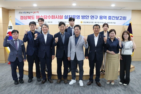 (경북=NSP통신) 조인호 기자 = 경상북도의회 의원연구모임 ‘경상북도 해수담수화시설 발전연구회’(대표 박용선 의원)는 지난 28일 도의회 다목적실에서 ‘경상북도 해수담수화시설 설치운영 방안 연구 용역’ 중간보고회를 개최했다.