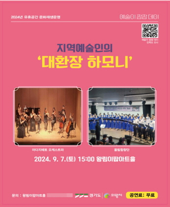 ‘예술이 팝팝 데이’ 시즌2 사업의 일환인 이번 공연은 의왕시 지역예술인으로 이루어진 아다지에토오케스트라와 울림합창단 단원들이 함께하는 기획 공연으로 진행된다.