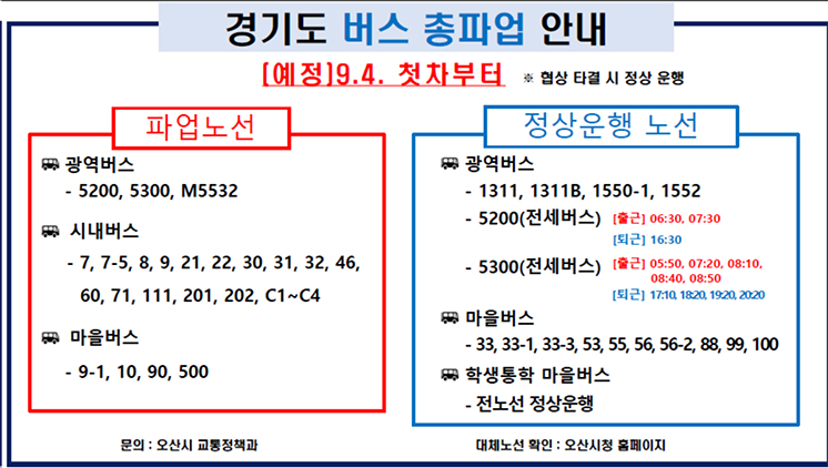 #오산시버스파업 #오산시대중교통 #오산시교통수단 #오산시대체버스 #오산시무료버스