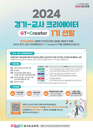 (경기=NSP통신) 조현철 기자 = 경기도교육청(교육감 임태희)이 ‘2024 경기-교사 크리에이터(GT-Creator)’ 1기 선발을 추진한다.