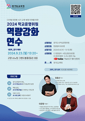 9월 연수 참가 희망자는 4일부터 신청할 수 있다. 당일 현장 참석이 어려운 학교운영위원은 경기도교육청 유튜브 채널(GO3) 생중계로도 참여할 수 있다.