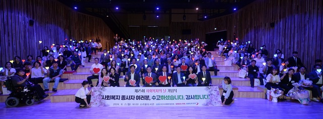 소리울도서관 아트리움에서 민·관 사회복지 종사자 및 관계자 등 200여 명이 참석한 가운데 열린 행사는 사회복지의 중요성을 다시 한번 되새기고 사회복지 분야 종사자들의 노고를 격려하기 위해 열렸다.