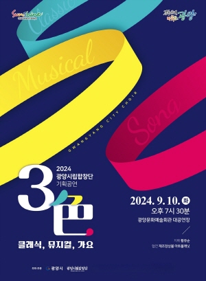 (전남=NSP통신) 김성철 기자 = 광양시는 오는 9월 10일 저녁 7시 30분 광양문화예술회관 대공연장에서 광양시립합창단이 기획 연주회 ‘3色 클래식, 뮤지컬, 가요’를 선보인다고 밝혔다.